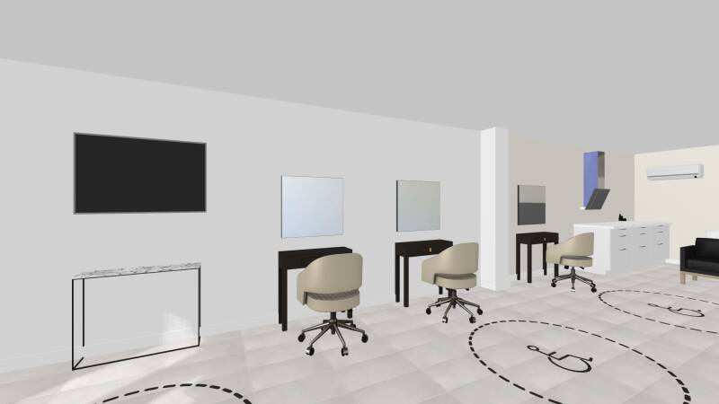 Prochaine étape, fin de la pose côté pièce principale des postes de coiffage et la zone d'attente de la clientèle.