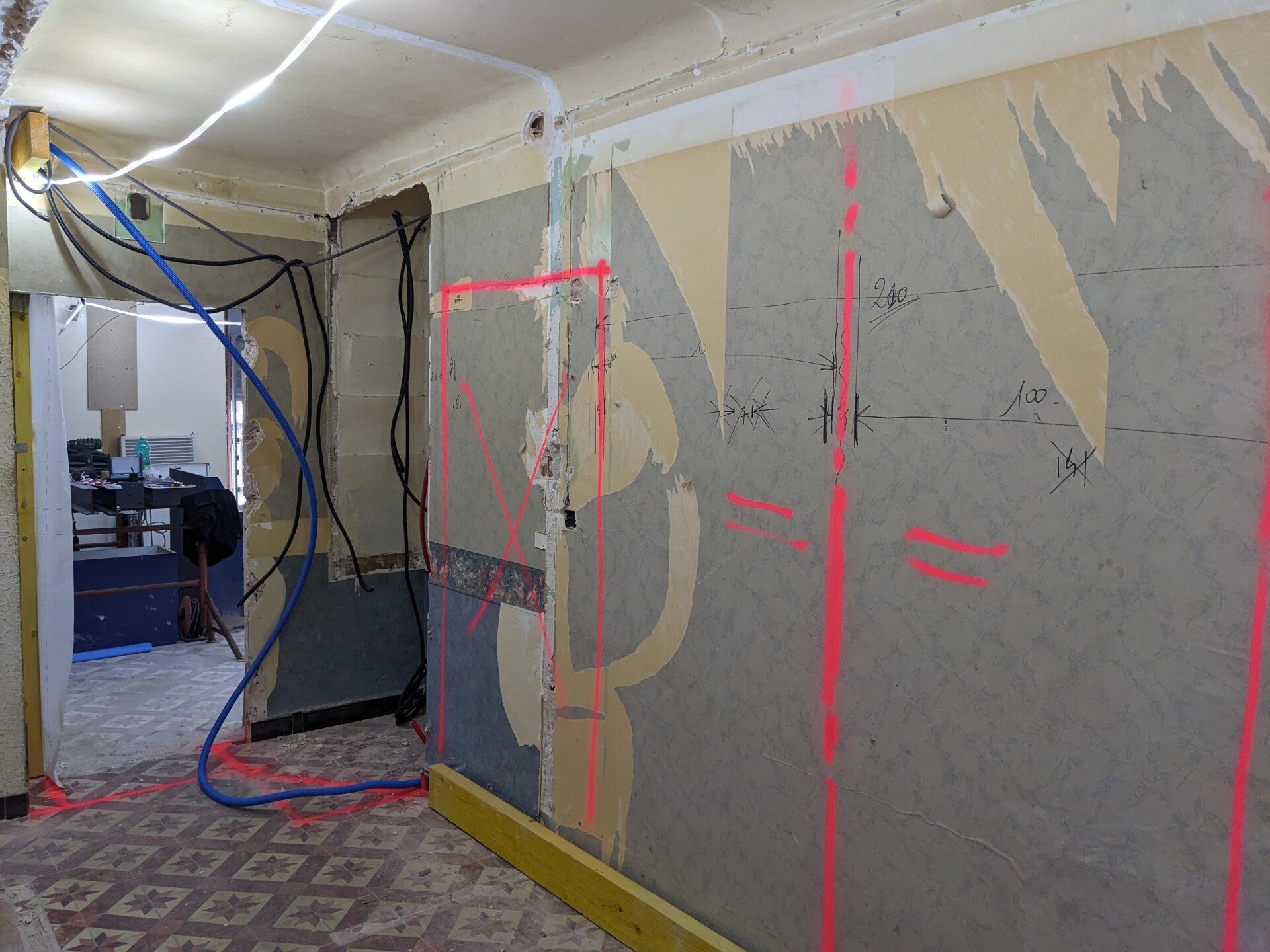 Ce travail a été difficile au regard que la verticalité, le parallélisme et la perpendicularité des murs ainsi que la planéité d'un plafond qui n'est pas à ce à quoi on pourrait s'attendre (plusieurs centimètres !).