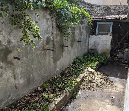 Il faut savoir légèrement "tricher" pour masquer ces défauts de murs bâtis en galets de Durance !